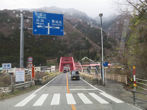 10:44 船津橋で国道41号線へ 国道471号線で神岡の市街地を通過し高原川に架かる船津橋を渡ると国道41号線に突き当たります。 まだまだ、先に進みます。 右折して国道41号線に入り、富山方面を目指します。 |