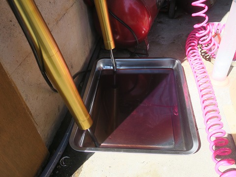 11:25 抜けたオイルは 今まで入っていたフォーク オイルも抜けてきましたね。 今回は、全部バラさないので、オイルは全部抜け切らないです。 ここまで 2,000kmちょっと走行しましたが、フォークオイル交換してるんじゃないかな? |