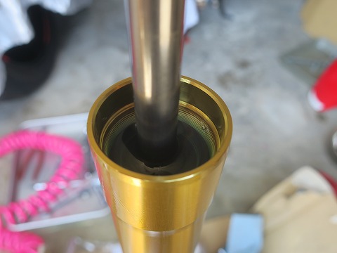 オイルのレベル調整が出来たので、フォークを組んでいきます。