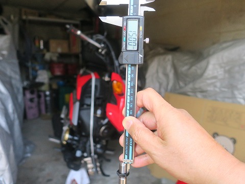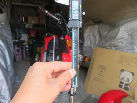 フォーク ボルトを外して、ノギスを取り出し、ロックナットの位置の写真を撮る。