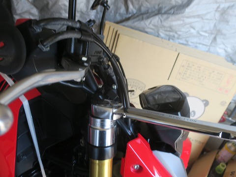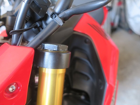 フォークのよじれを取ってから、もう一度トップブリッジのボルトを締付け。
