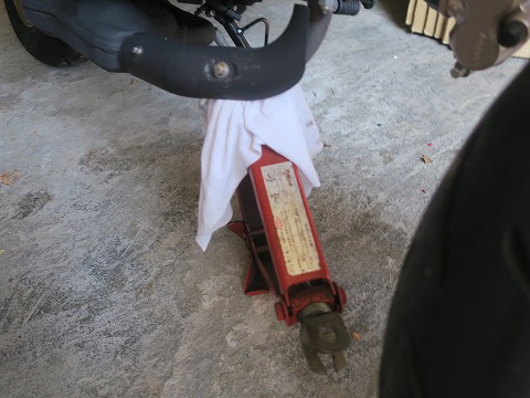 フロント タイヤの組付けが終わったら、ジャッキを外します。