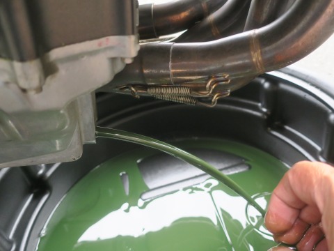 15:26 ここまで オイル抜きます。 前回のオイル交換は2020年の6月。 ここまでの走行は、筑波サーキットが、 17周+17周+17周+16周+17周+17周+18周 → 119周 エビスサーキットが 18周+35周+14周+19周+16周+14周+7周 → 123周 合計で約2kmのコースを 242周して 約 484km、まあ500Km走りました。 オイルの色はこんな感じ。 透明度は無くなって、陸軍の迷彩色みたいな色。 って言ったら良いのかな。 |