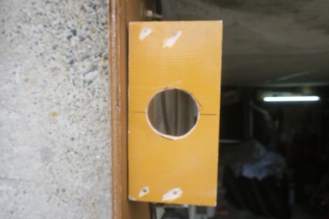 ホールソーで開けた穴に、ホースを入れてみました。