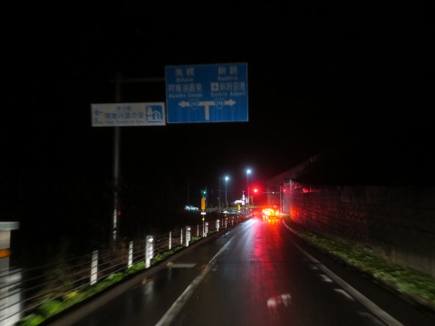 17:56 釧路は右折 阿寒インターを下りるとT字路に突き当たり。 左に行くと阿寒湖方面。 釧路に向かうには右折です。 |