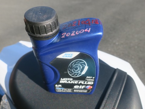 15:24 ブレーキ フルードは ガレージからブレーキフルードを引っ張り出してきました。 フルードは、elf のDOT4。 買ったのは、2020年4月だけども、開封したのは1年後の2021年の4月。 時期、1年経つので、早めに使い切りたいところです。 |