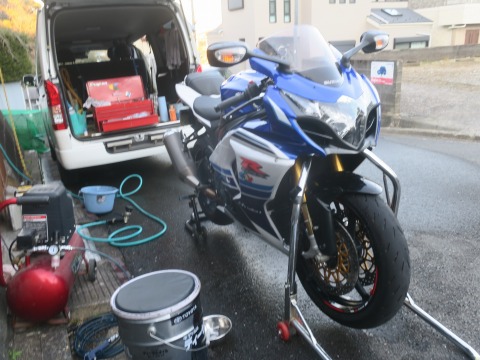 14:12 洗車から 昨日は箱根を越えて、西伊豆の松崎までツーリングに行きました。 国道1号線での箱根の峠越えは、路面に白く凍結防止の塩化カルシウム痕。 放っておくとサビの原因になるので、さっそく洗車しちゃいます。 |