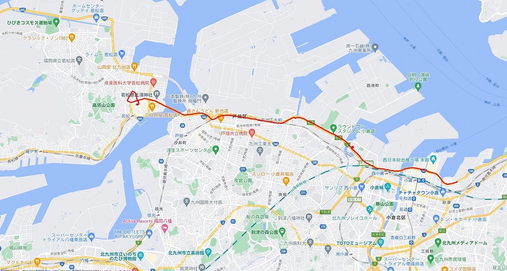 | ここまでの道程:北九州市若松台~東龍軒東港店 | |
