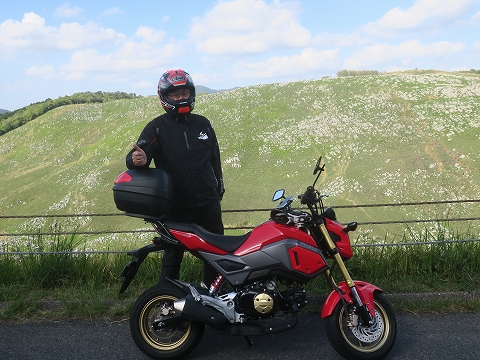 16:01 写真を撮ってもらう 県道242号線を要所要所景色の良いところで停まって、写真を撮りながら戻ります。 途中の駐車スペースでGROMを駐めて写真を撮っていると、外人の女性のライダーが「写真撮りましょうか。」と声をかけてきました。 せっかく声をかけてくれたので、お言葉に甘えて、写真を数枚撮ってもらいました。 「ありがとうございます。」 秋吉台も満足したので、美祢に戻って、今夜の宿に向かうことにしましょう。 |