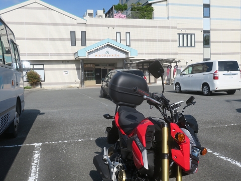 16:31 宿泊先に到着 秋吉台からGROMを走らせること30分弱、今夜の宿に到着しました。 泊まるのは、”美祢グランドホテル”。 駐車場にGROMを駐めて、さっそくチェックインしましょう。 ここまでの走行距離計の写真は撮り忘れ。(ーー;) (つづく) |