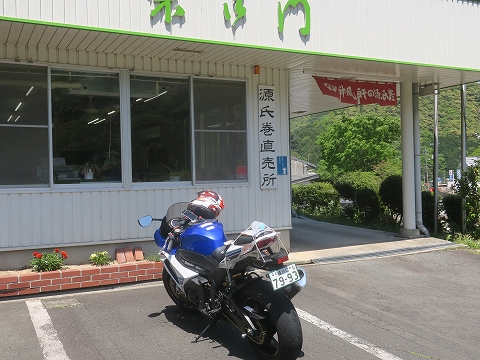 13:03 源氏巻の製造販売 津和野の市街地を出て県道13号萩津和野線に入り萩に向けて西走始めます。 右手に”源氏巻”の製造販売をしている建物が目に入りました。 ちょっと寄り道。 |
