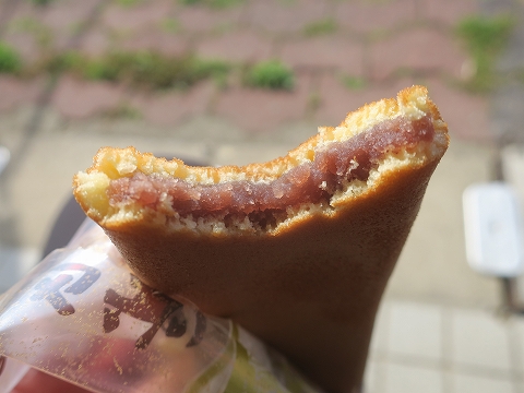 15:44 食べちゃう 開けちゃいました。 食べちゃいました、源氏巻。 こうゆう食べ物だったのね。 どら焼きとかと同じ様な生地で薄め、あんこを挟んだお菓子。 あんこは必要以上に甘くなくて、美味しい。 フェリーの中で食べようと思っていたのに、”地産地消”になっちゃいました。 否、違うな。 地産は島根県で、地消はここ山口県だ。(笑) |