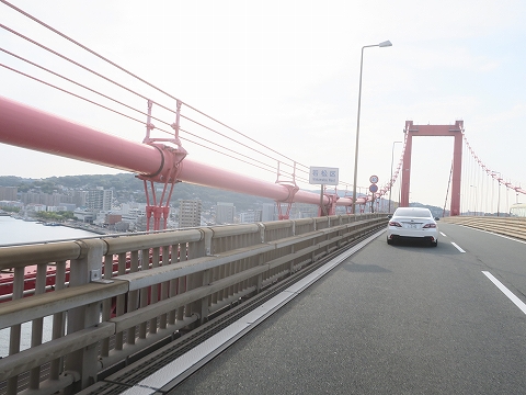 16:53 若戸大橋で若松区に 北九州市の市街地走行は端折る。 門司港ICからは、関門海峡沿いを走る国道199号線を南西に走り、若戸大橋を渡ります。 橋の中間地点で、若松区に入ります。 |