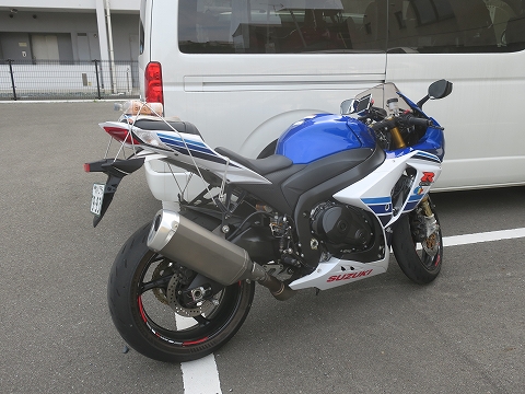 17:10 到着 若戸大橋を渡ってすぐ泊まっていたルートインホテルに隣接しているハイエースを駐めているコインパーキングまで戻ってきました。 それでは、GSX-Rをハイエースに積む前に、まずは荷室に隠れてライディング ウェアから普段着に着替えをしちゃいましょう。 |