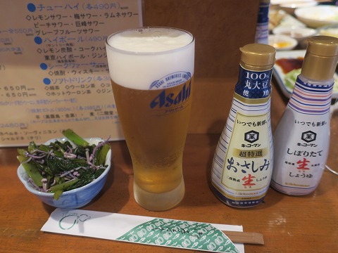 店内に入り、カウンターの席に座ると、間髪入れずに「とりあえず生。中でね。」