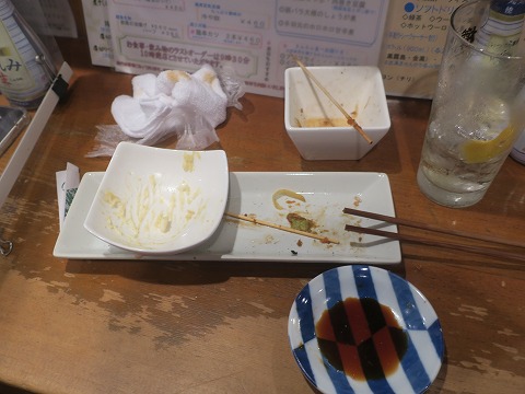 このあとも、ビール飲んだり、サワー呑んだり、追加で料理を頼んだりと、結構飲み食いしましたけど、隣に座った人と話し込んじゃって、他の料理の写真はありません。 (ーー;)