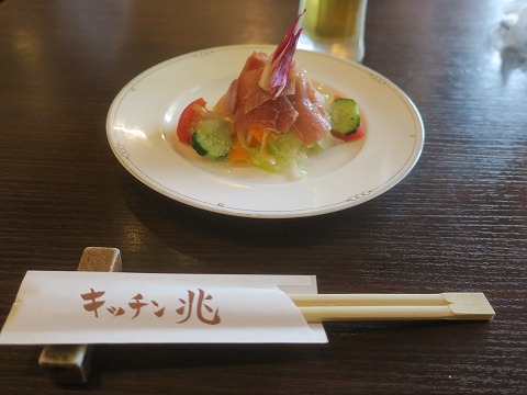 しばらくして運ばれてきたのは、セットの”生ハムとキャベツのマリネ”。