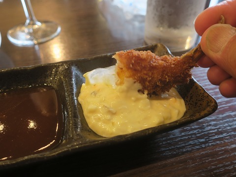カニのツメのフライにはタルタル ソースをたっぷり付けて。