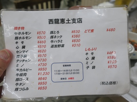18:36 お品書きは 一通り食べて、お代わり。 お品書きは、ご覧の通り。 焼肉類もあるけど、ホルモンが主体。 そして、お値段も安いです。 夜の営業開始は17時からですが、自分が着いた18時には店内は満卓。 週末は事前の予約が必須ですね。 |