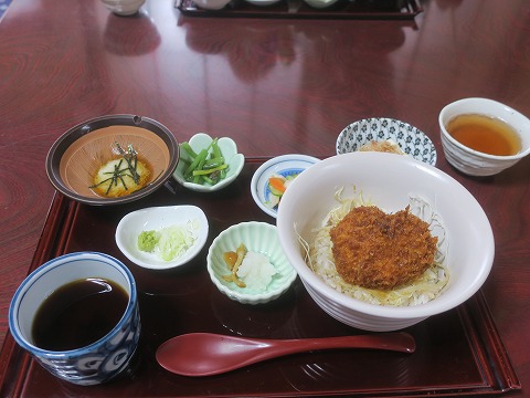 13:03 ソースかつ丼の 頼んだのは、いつものソースかつ丼のセット。 ここ数年、ここを訪れたときの定番。(保守的とも) まずはソースかつ丼が運ばれてきました。 |