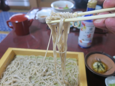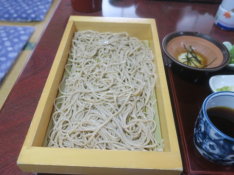 13:03 続いて 続いて蕎麦が運ばれてきました。 蕎麦は標準的な正方形に近いせいろではなく、長方形の箱状のせいろに入っています。 蕎麦は細めに打たれた、どちらかと言えば江戸蕎麦に近いものです。 それでは、蕎麦がダレないうちにいただきましょう。 |
