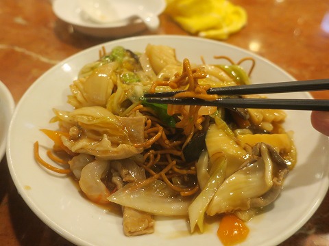 19:31 バリ焼きそば で、次に頼んだのが”バリ焼きそば”。 バリバリほどじゃないけど、パリポリに揚げられた餡かけ焼きそば。 このお店、混んでいてもすぐに料理が出てくるのが良いです。 |