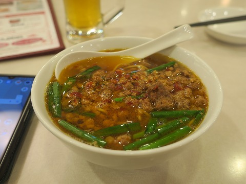 スープが辛いんだけど、入っている挽肉の炒めたトッピングを食べようと思ったら、一緒にスープも食べることになっちゃうんで熱辛いんですよね。