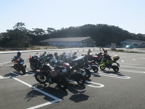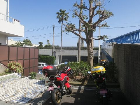 オーシャンパークの駐車場にバイクを停めます。