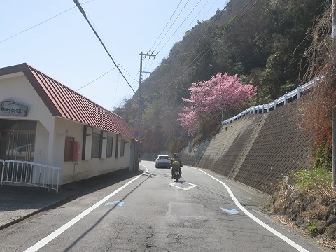 伊豆の河津町の地名がついた河津桜ですので、伊豆半島を走っているとところどころ目に飛び込んできます。