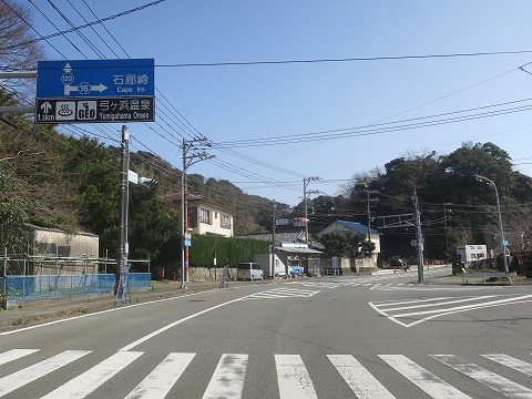 国道136号線の分岐から南下すること1km弱、道路標識にしたがって右折、引き続き県道16号線で石廊崎方面を目指します。