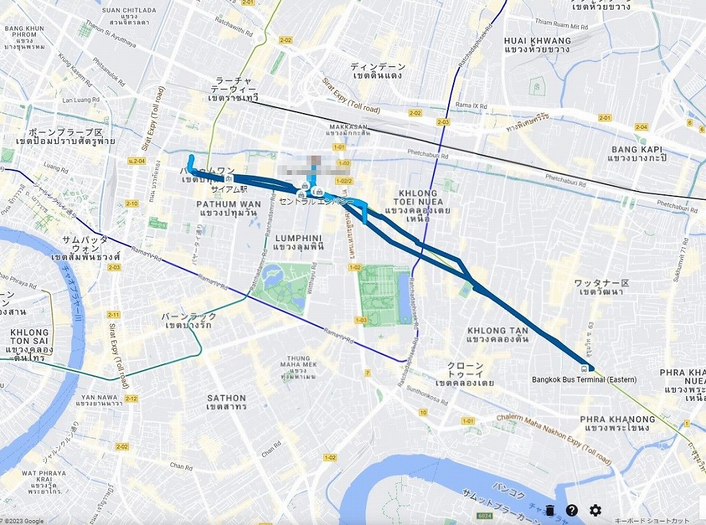 13:26 Ekkamai駅に E2のChitLom駅から5駅、長距離バスターミナルのあるE7のEkkamai駅に到着しました。 降ります。 バスターミナルはEkkamai 駅に近接しています。 昨晩 google map で確認済。 (^_^)v |