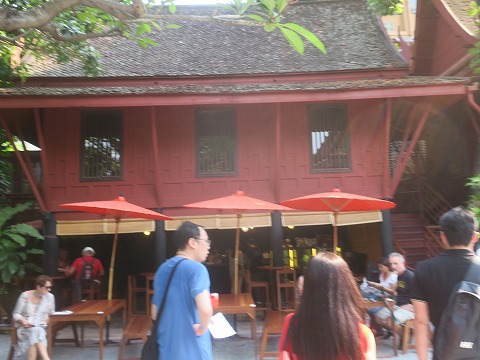 15:36 外は JIM TOMPSONの家は、タイの伝統的な建築で、日本では見ることができない独特の形をしています。 外に出ると、暑いですね。 木陰はまだ耐えられますが、直接 日の光が当たるところに居たら熱中症になりますね。 自分の体も、桜が咲く季節の日本から来て1週間しか経っていませんので、暑さにまだ慣れてません。 そう言えば、昼にラテとケーキを食べただけで、お腹が空きました。 移動して、何か食べることにします。 |