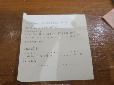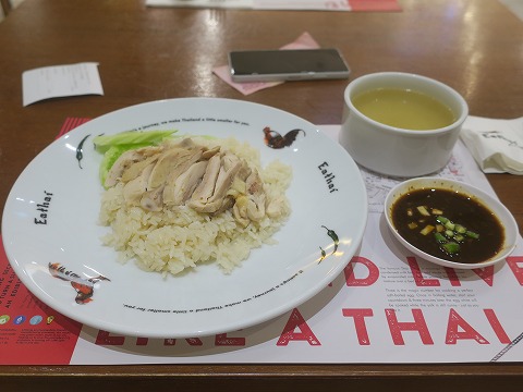 16:29 カオマンガイ フードコートには20店舗くらいのお店が出店しているかな。 カオマンガイをどの店で扱っているかよく分からないので、フードコートの入口に居た店員さんに、「カオマンガイを食べられますか?」って聞いて、伝わらないとイヤなので、スマホでカオマンガイの画像を出して見せて。 カオマンガイのお店まで連れてきてくれました。 で、無事カオマンガイにありつけました。 (^o^) 注文の時に、「big or small?」って聞かれましたので、時間が中途半端だったので、小さいのにしておきました。 |