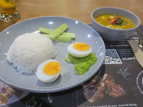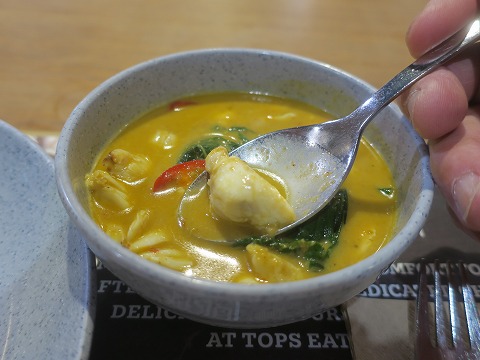 19:57 プーパッポンカリーを そして、タイに来たら食べたかった料理のひとつが、プーパッポンカリー カニのカレー。 出てきたのは、ちょっとイメージと違った。(笑) 過去に食べたものはカニが甲羅ごと丸ごと入っている黄色いカレーでした。 269バーツ(1,000円ちょっと) |