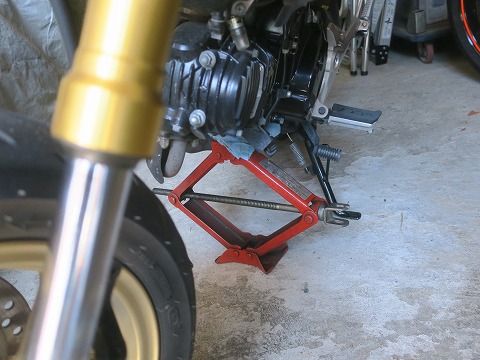 10:29 ジャッキアップ フロント フォークを取り外しました。 不安定で恐いね。 ( ̄。 ̄;) うっかり、押したりしない様、気を付けよう。 |