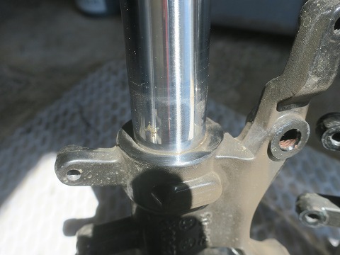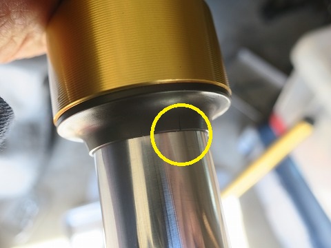 10:49 ダストシールには アウターチューブ端にあるダスト シール。 ちょっと割れがあります。 前回もあったんですけどね。 ダスト シールを交換するには、アウターを引き抜かなきゃならないので、今回も見送り。 オイルが漏れるようなら、バラして交換ですね。 |