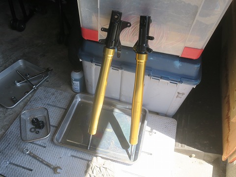 10:29 フロント フォーク 外した左右のフロント フォーク。 |