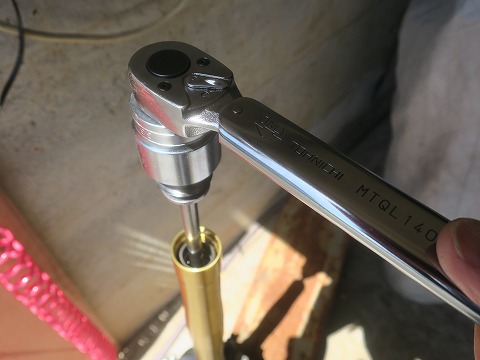 11:05 トルクが低い 三つ叉のピンチボルトを締め付けたら、フォークのアウターが供回りしなくなるので、キャップボルトをトルクレンチを使って規定値で締め付け。 このトルクがね。 締め付けるトルクが低いです。 力任せに締め付けると、ネジを舐めてしまうので、トルクレンチは必須ですね。 自分はついつい締め過ぎちゃうんで、トルクレンチが無いと恐いです。 |