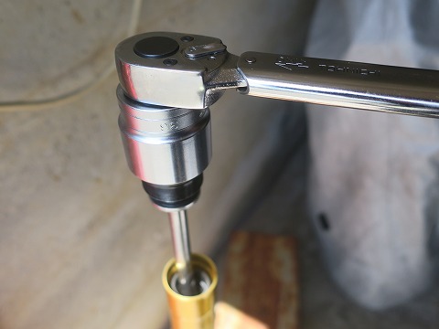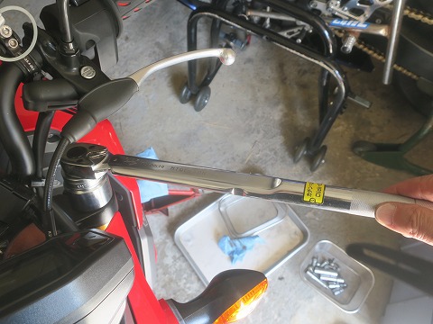 11:00 規定トルクで 三つ叉のピンチ ボルトをトルクレンチを使って規定トルクで締め付けます。 |