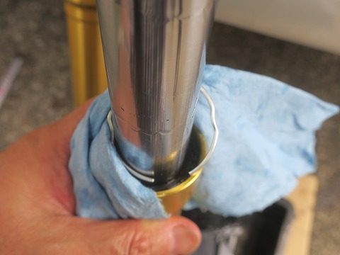 ラップを巻いたら、部品が挿入しやすいようにフォークオイルを塗っておきます。