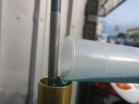フォークオイル充填の基本は多めに入れて、余分を抜く。