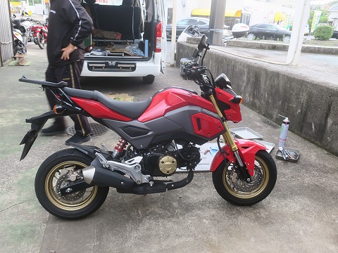 早速、ハイエースから空いているスペースを借りて、GROMを降ろして作業します。