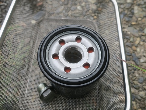 15:47 新しいの 新しいオイルフィルター。 周辺がOリングのオイルリングになっているので、装着前になじむように使うオイルを塗っておきます。 |