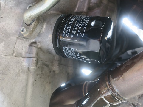 15:35 オイルフィルター エグゾースト パイプの裏にオイルフィルター。 普段、手の届かないところなので、微妙に汚れてます。 |