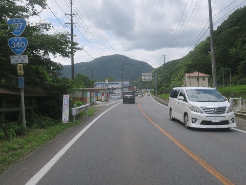 国道340号線は左折で、国道107号線との重複区間を走ります。