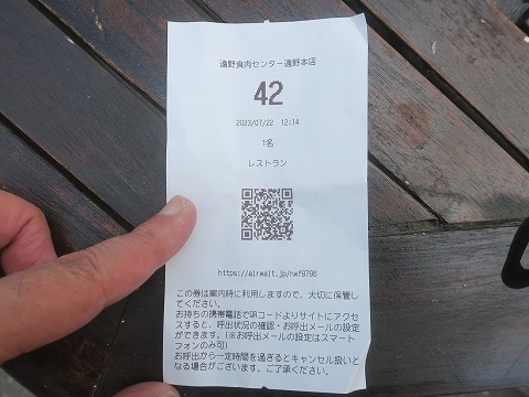 12:18 受付票を ウェイティングなので、入口で受付票を受け取って、待つことにします。 ”42”ってあるけど、ウェイティングしているお客さんはすでにある程度番号は進んでいるみたいです。 客席数が100席以上あるキャパの大きなお店なので、それほど待たなくても大丈夫でしょう。 知らんけど。 ( ̄。 ̄;) |
