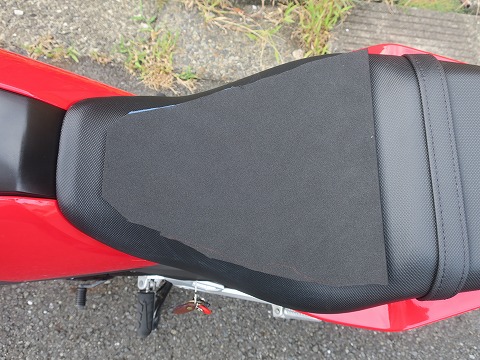 15:45 シルエットが・・・ さっそく着けてみた。 ウレタンシートの角のシルエットが、表にはっきり出ちゃいますね。 もう少しシートに押しつぶされるかと予想していたんですが・・・・。 |