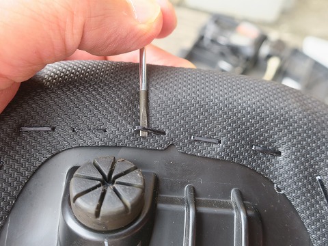 15:27 半分だけ 外した。 半分くらい。 後ろの方は外さなくても、ウレタンスポンジは入れられそうなので、この辺りで止めておいた。 針を全部外しちゃうと、後でシートを戻す時位置決めが面倒臭くなっちゃうからね。 |