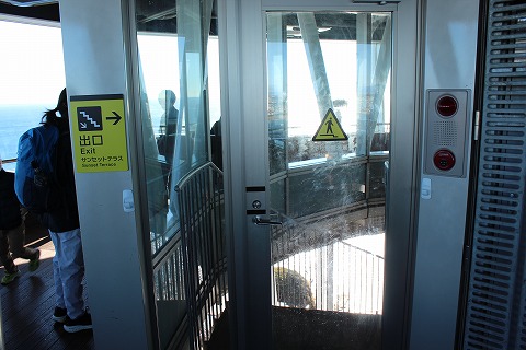 11:49 サンセットテラスに エレベータでサーっと上がりました。 上部にあるこの展望台は”サンセットテラス”って名前らしいです。 たくさんの人がいますね。 |