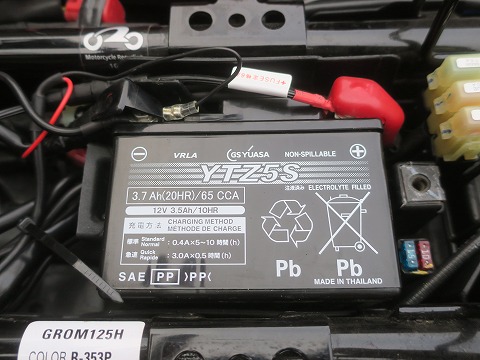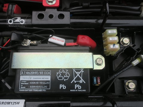 15:22 前のバッテリーも バッテリーにアプローチしました。 このバッテリーもよく見ると、右下に made in Thailand の文字が。 確かに、GROM自体、タイホンダで製造してますからね。 |